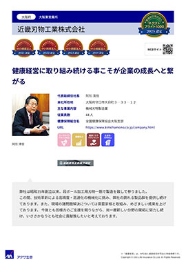 令和元年9月には、従業員の健康増進と活力向上を目的として「健康経営宣言」を行い、令和3年3月には「健康経営優良法人2021」の認定を初めて取得。以降5年連続で認定を受けています。また、同年11月より専任の産業医を配置し、健康診断を通じて専門的な視点から従業員の健康支援を行っています。